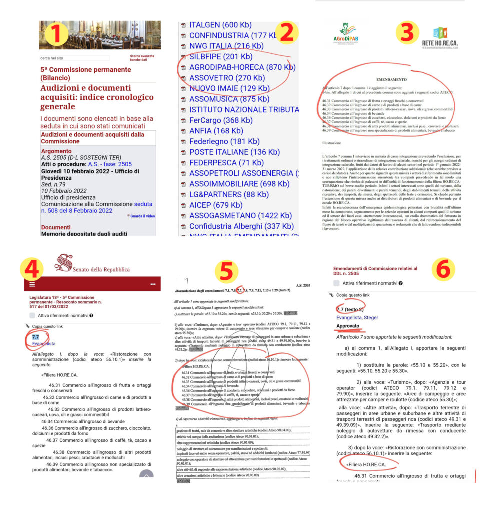 1)     10 febbraio 2022 – deposito presso la Commissione bilancio del Senato della Repubblica della memoria da parte di AGroDiPAB – Rete Horeca, quale soggetto audito nell’ambito del AS 2505 (DL 4/22) noto come sostegni-ter; AGroDiPAB – Rete Horeca presente nell’elenco delle memorie (punto 1 e 2);
